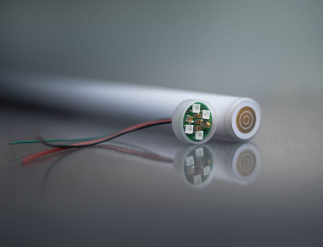 Illuminated blade with 127 RGB pixels for electronic sabers, with NPXL-compatible coupler.