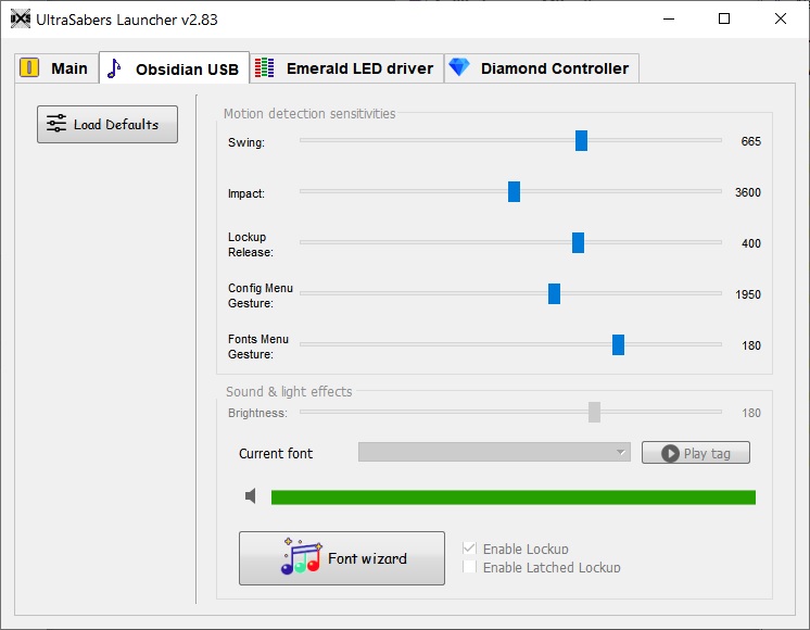 • Button and motion controlled lightsaber sound effects: Power On, Hum, Swing, Clash, Lockup, Power Off